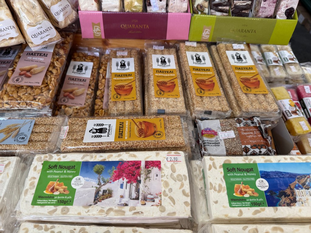 Şehir merkezine döndüğümde yorulmuş ve susamış olduğum için liman yakınında sahibi Türk olan Sofra restorana oturdum. Nefis Türk ev yemekleri yapan bu şirin mekân gündüz ada merkezinde olup dinlenmek isteyenler için ideal. Adaya beşinci gidişimde burada bir musakka yedim, porsyion büyük ve gayet lezzetliydi. Sahibi olan bey Adaya günübirlik gelen Türklere yol gösteriyor, uygun fiyatla nerde ne bulabileceklerini anlatıyordu. Akşam üstü yürüyüşümün sonunda bir tatlıcıda durup tezgahtaki ürünleri inceleme fırsatı buldum. Türkiye’den tanıdığımız baklava, kadayıf, kuşburnu, revani gibi tatlılar mevcuttu. İçerideki görevli hanıma gidip fiyatlarını sordum, kilo ya da tepsiyle satıldığını, yalnız büyük dilim kadayıf ya da baklavadan taneyle alabileceğimi söyledi. Biraz inceledim, 2 Euro’ya bir dilim kadayıfta karar kıldım. Küçük kutusuna koydu, yanıma alıp dışarı çıktım, yolda yürüye yürüye yedim. Hakikaten şerbetiyle, kıvamıyla nefisti. Tabi, yazın sıcakta böyle kilo yapan şeyleri yememek lazım aslında, ben de nefsimi köreltecek kadar bir dilim tadımlık almış oldum. Türkiye’ye göre fiyatlar çok yüksek, özellikle döviz kurundaki yükselişin ardından Yunanistan artık Türkler için ucuz tatil cenneti olmaktan çıkmış durumda. Buna karşın talep hâlâ yüksek, gelen turist sayısında bir düşüş yok.