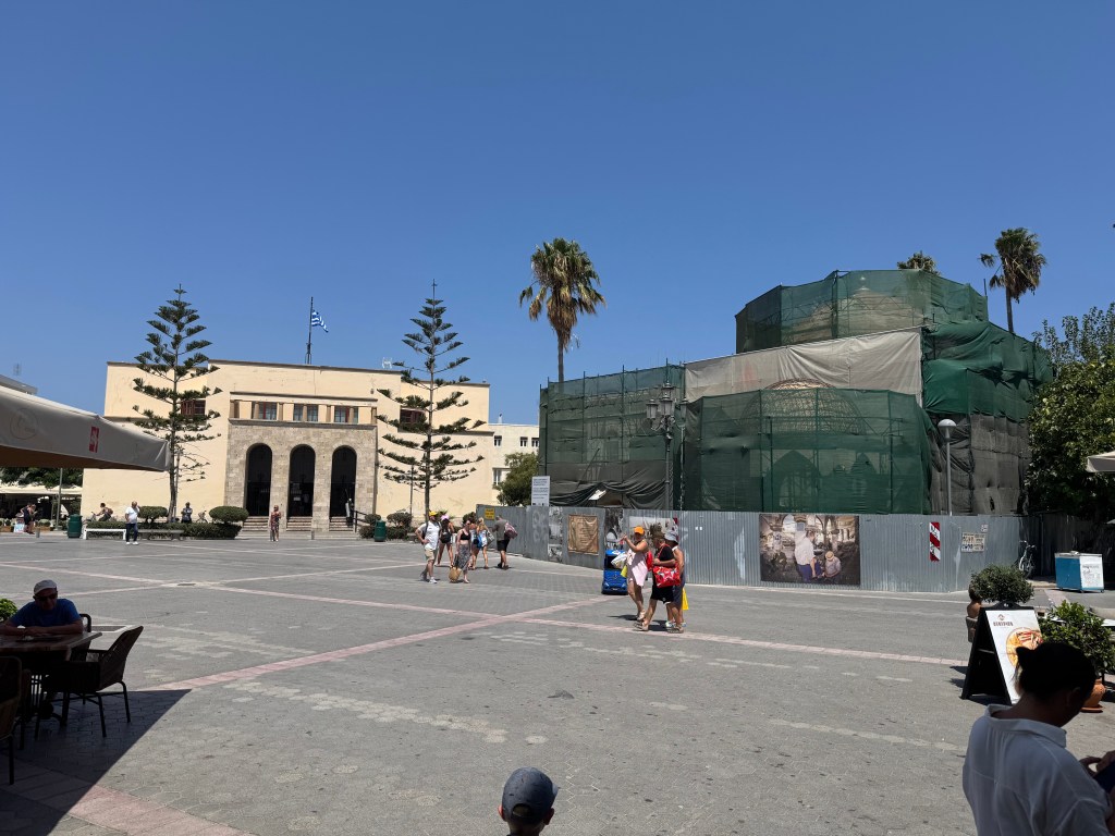 Elefterias Meydanı’na yürüyerek kapalı haldeki Defterdar Camii’ni dışarıdan görebildim. Kartpostallardaki eski, ışıklandırılmış, cıvıl-cıvıl haline bakınca duygulandım; inşallah bir gün tekrar eski günlerine kavuşur diye geçirdim içimden. Arka taraftaki Cezayirli Gazi Hasan Paşa Camii minaresi ayakta olmasına karşın kullanılmayan bir yapı: Kapı ve pencereleri kırık, yanındaki şadırvan yıkık. Genel olarak İstanköy’deki Osmanlı eserlerinin bakımsızlığı üzücü, bununla ilgili Bodrum’da feribot iskelesinden bir haritalı broşür de almıştım yanıma, vaktim olursa hepsini tek tek ziyaret etmek için, fakat vakit kalmadı tabi. Bir diğer yapı az ilerideki 17. yy. yapımı Osmanlı Hamamı. İçeriyi şöyle bir gezdim, en azından kapısı-çatısı iyi durumda, içerisi temiz görünüyordu. Girişteki Yunanlı bir rehber isteyenlere ücretli olarak şu an müze olarak kullanılan hamamı gezdirebiliyor.